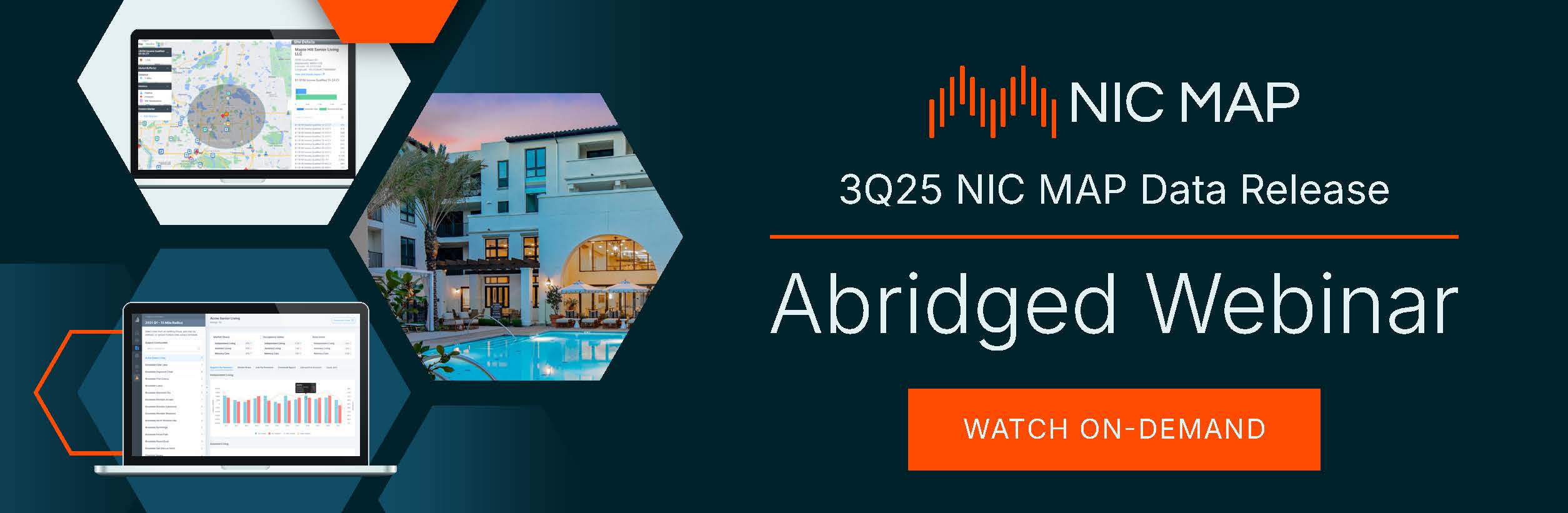 NIC MAP clients with access to NIC MAPĀ® Data attend our Data Release Webinar & Discussion every quarter for the latest seniors housing market data and trends, presented with commentary by NIC’s research team.